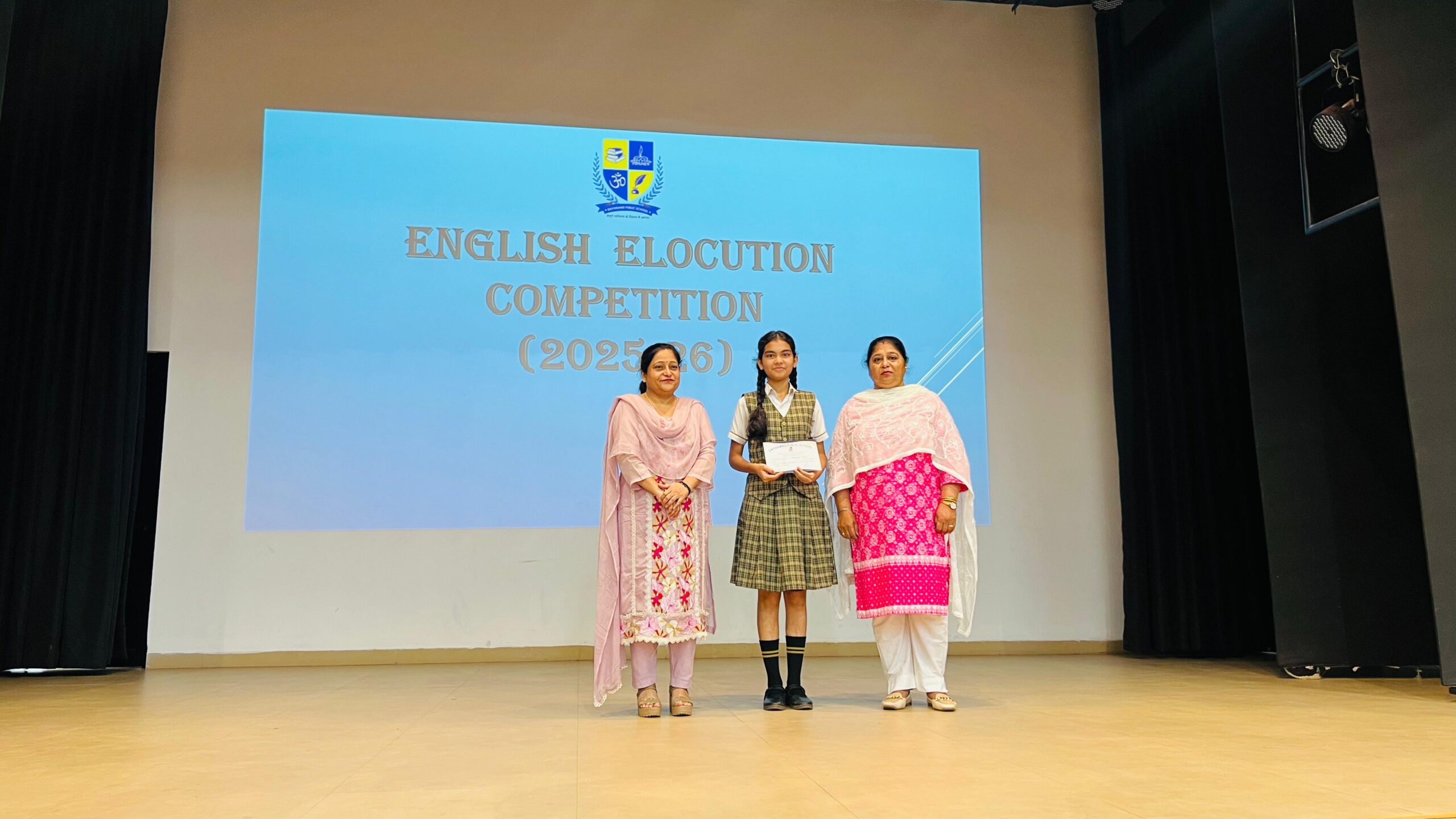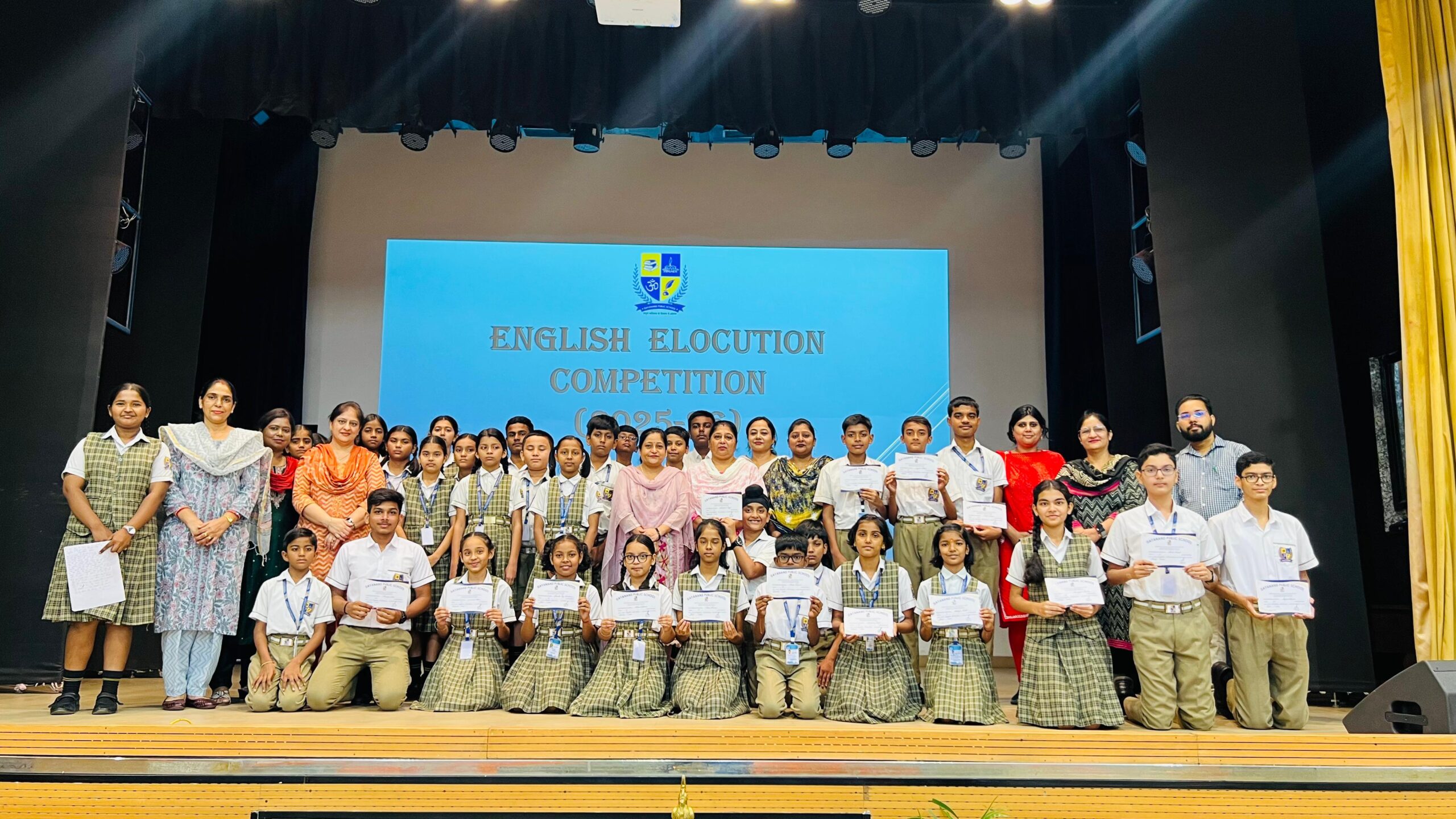 “Dayanand Public School’s English Department organized an English Elocution Competition for students of Std IV-VIII. Our esteemed Vice Principal, Ms. Archana Rehal, graced the event as the Chief Guest. Mrs. Tejwant Kaur and Ms. Razzy Khalsi served as the judges.